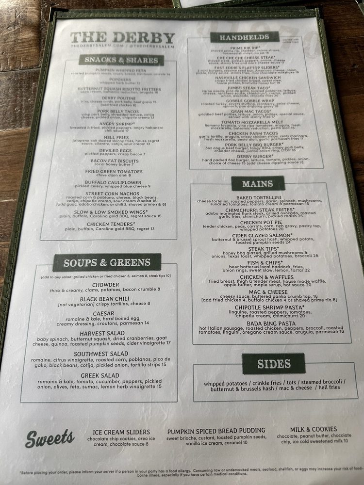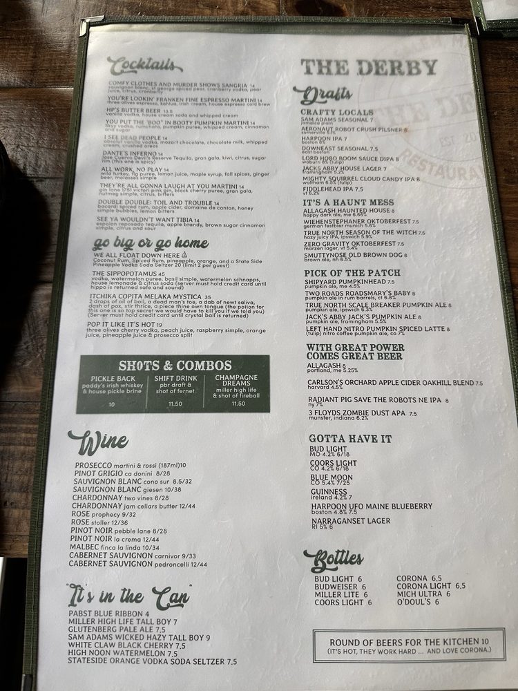 The Derby Restaurant & Bar Menu (2025 Update)