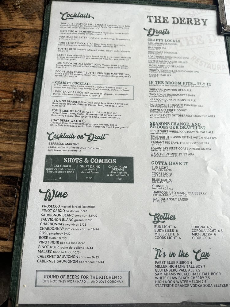 Introducing The Derby Restaurant & Bar, a cozy pub in Salem, MA offering a wide range of American dishes. This restaurant stands out for its vegan and vegetarian options, making it a great choice for those with dietary restrictions. With its casual atmosphere and outdoor seating, it's perfect for a relaxed meal with friends or family. The waitstaff provides excellent service, and the full bar ensures you'll have a great drink selection to accompany your meal. The Derby is also kid-friendly, making it a versatile spot for any occasion. Whether you're looking for a hearty dinner or just a casual drink, The Derby Restaurant & Bar is sure to impress.